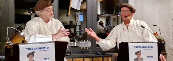 Reto Müller and Willy Schuldt, known as Wischu, invite you to a musical Kneipp cure with their program "Eis uf d'Ohre", which goes far beyond conventional musical cabaret. For decades, Reto Müller has dedicated himself not only to cabaret and comedy but also to the poetic and spiritual, melodiously supported by the second voice of his partner. In their troubadour-like performance, subtle wordplay and linguistic flourishes become supporting elements that accompany the audience, sometimes loudly, sometimes quietly, through the turmoil of human existence.